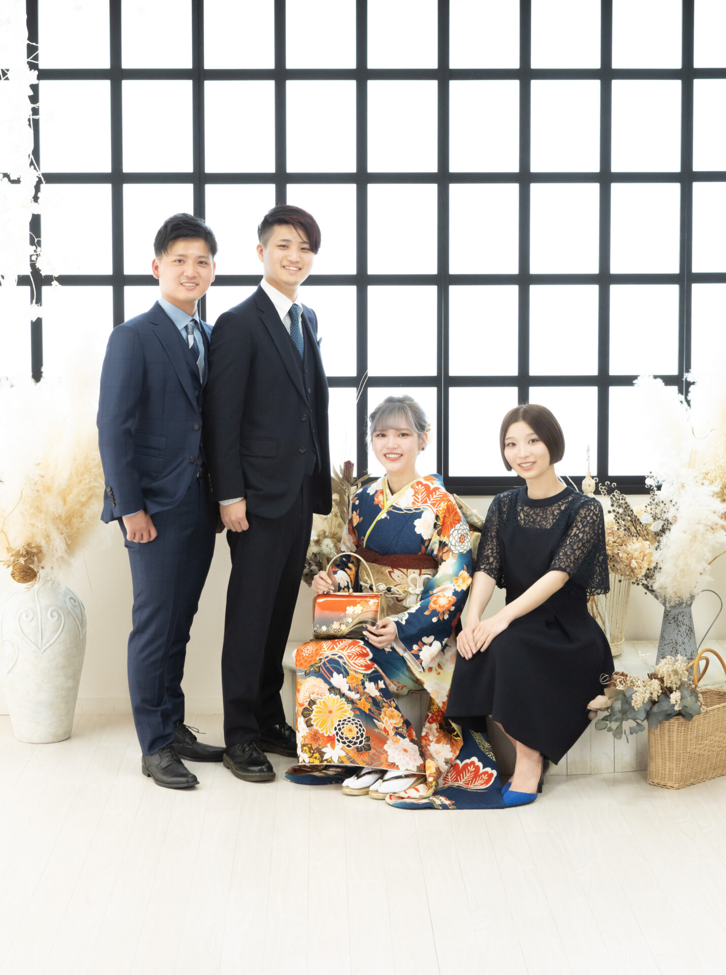 2着以上の場合は、5時間以上かかります。ご予約は15時ご来店が最終となります。美容室やスタジオはは貸切に致しますので、ゆっくり撮影できます。そのため振袖撮影は1日限定2組様とさせていただいておりますので、お早めのご予約をおススメしています。