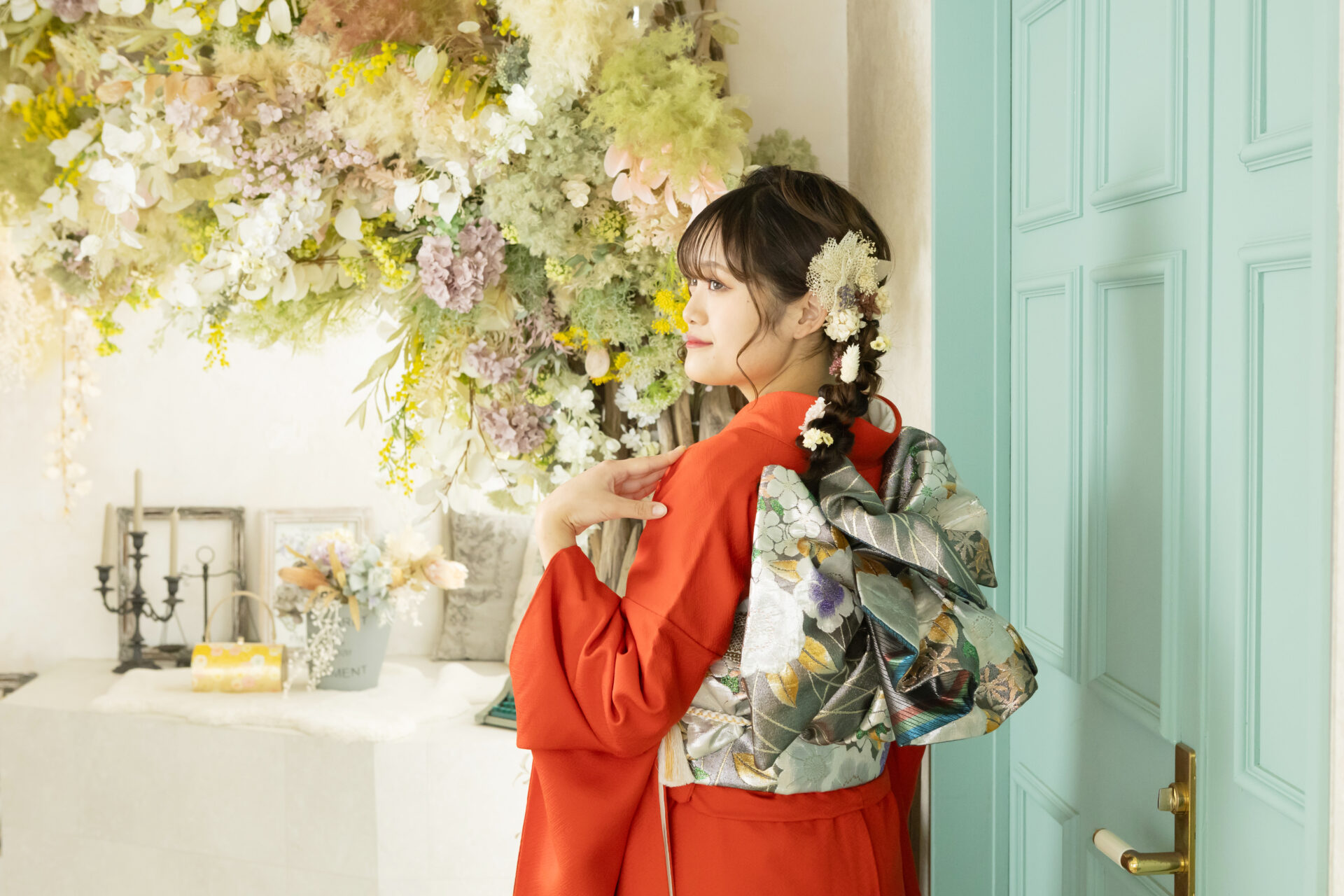 専門のプロがお支度を、経験を積んだ振袖撮影専門のフォトグラファーが貸切プライベート空間で、お嬢様のハタチを美しく残します。