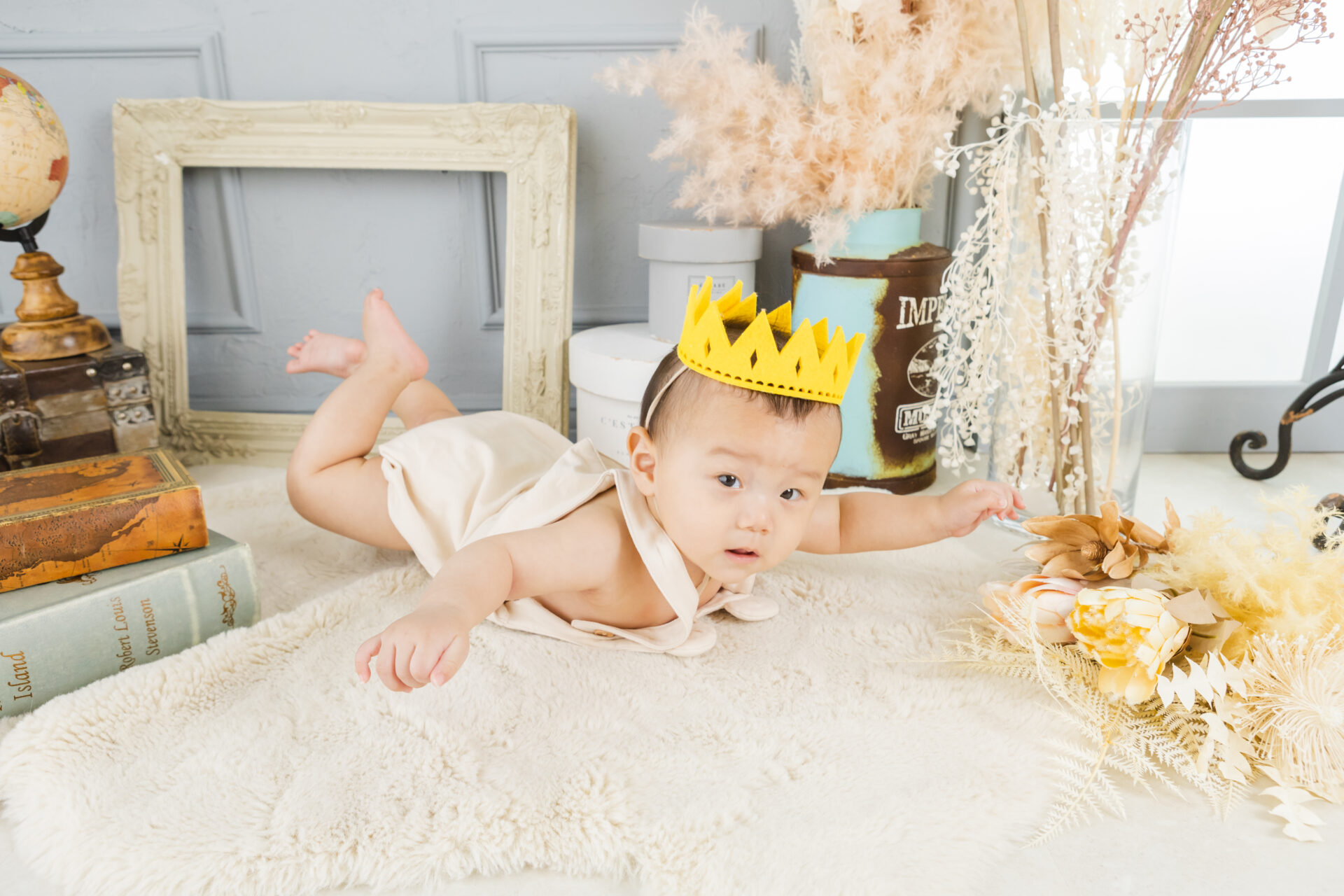 今しか残すことのできない赤ちゃんの表情や姿を、その時のそのままの大きさでA3サイズの写真で残す撮影会です♪「初めてのハイハイ」「初めてお座りできた!」ハーフバースデイや1歳の記念、1人で立てた記念など成長著しい生後1年間の様々なシーンで撮影できます!