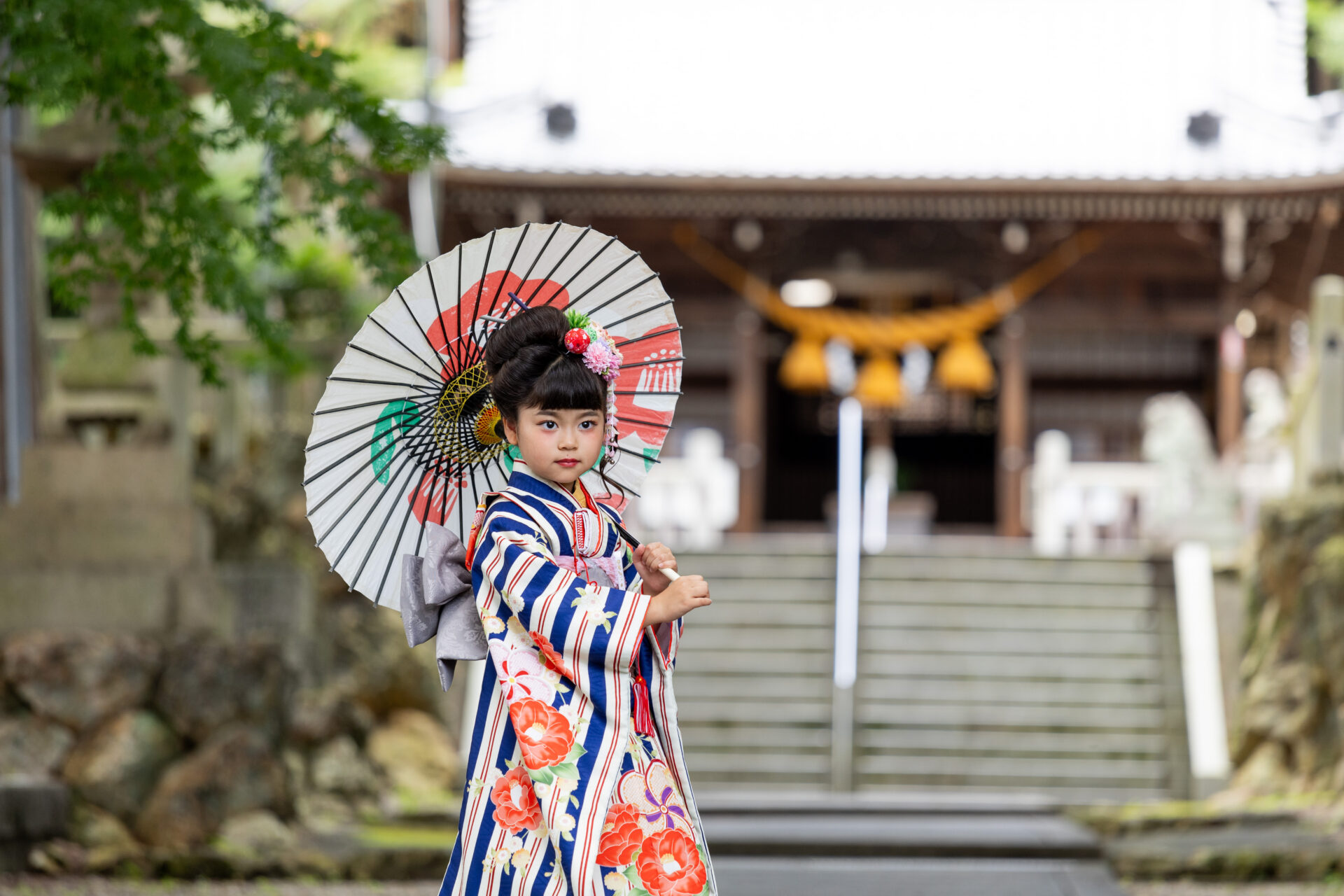 岐阜創寫舘ではスタジオを飛び出して、神社でも撮影できます!! お外ならではの自然な表情や姿は七五三ならではの素敵な思い出になるはず♥