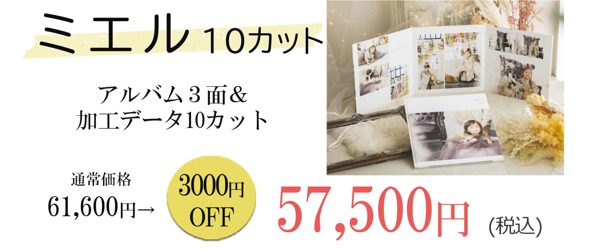 相談会にご来店の上各種アルバムorデータプランをご成約の方の大変お得な特典です。
