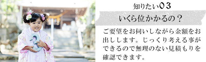 - 出来ます。衣装はもちろん事前に撮影プランを決めておくと、予算も把握できるし、撮影当日もお子様を待たせることなく、スムーズに進めることが出来ます。七五三相談会での事前打ち合わせを是非ご活用下さい。ただし、お参りシーズンになるとお出かけレンタルが優先になりますので、ご予約を保証できません。ご了承下さい。